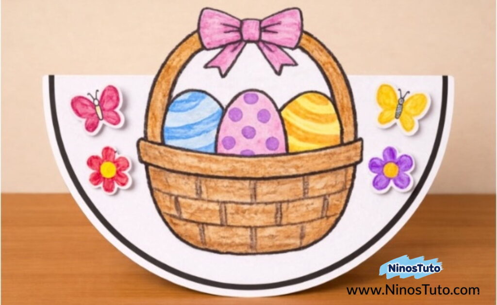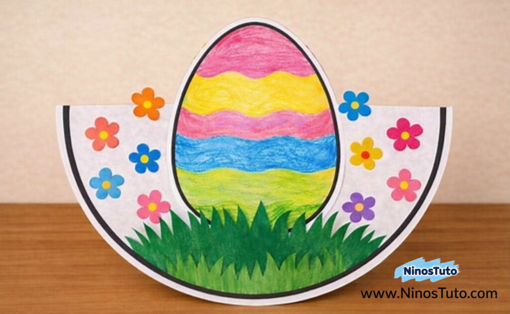 04. Manualidad de papel de cesta de Pascua con huevos y flores: