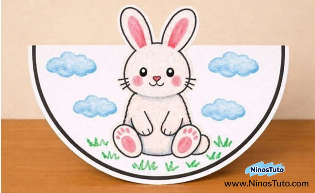 5. Pega la imagen de tu conejito en el centro de la parte frontal del semicírculo.