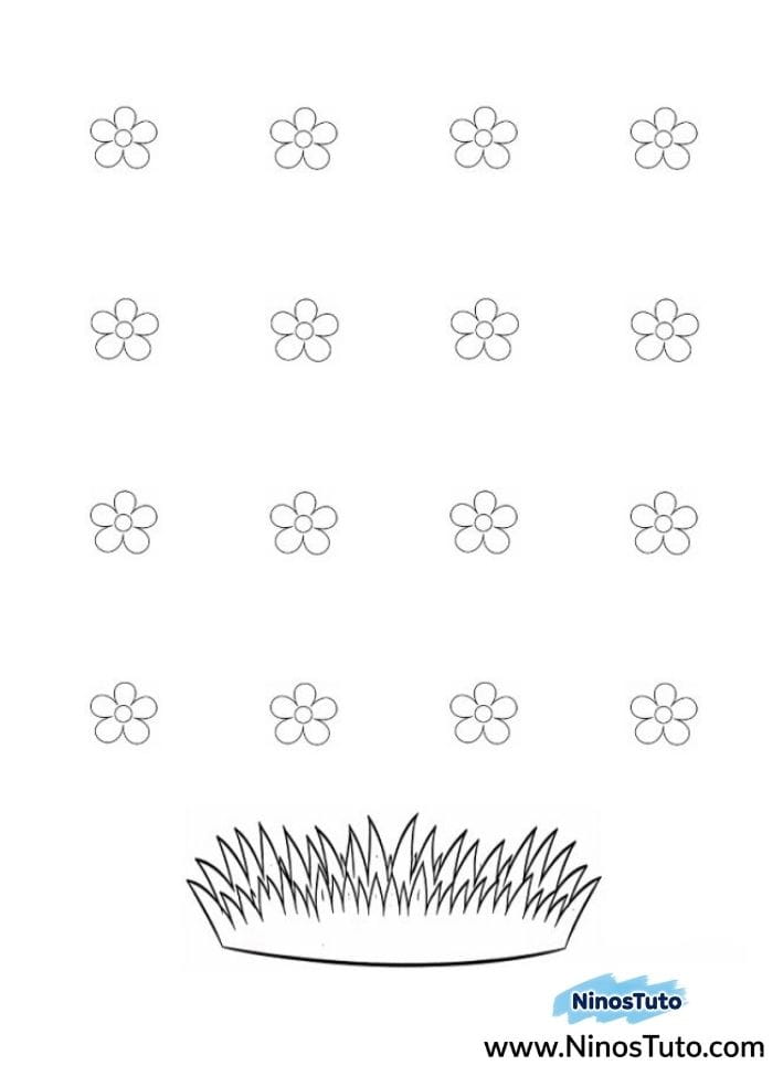 1. Imprime las plantillas dadas en una hoja blanca. Tienes 2 plantillas: una con un círculo y un huevo, y la otra con flores y césped.
