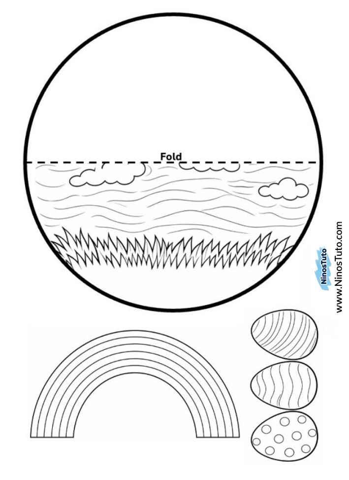 3. Recorta el círculo y las imágenes del arcoíris con huevos por separado.
