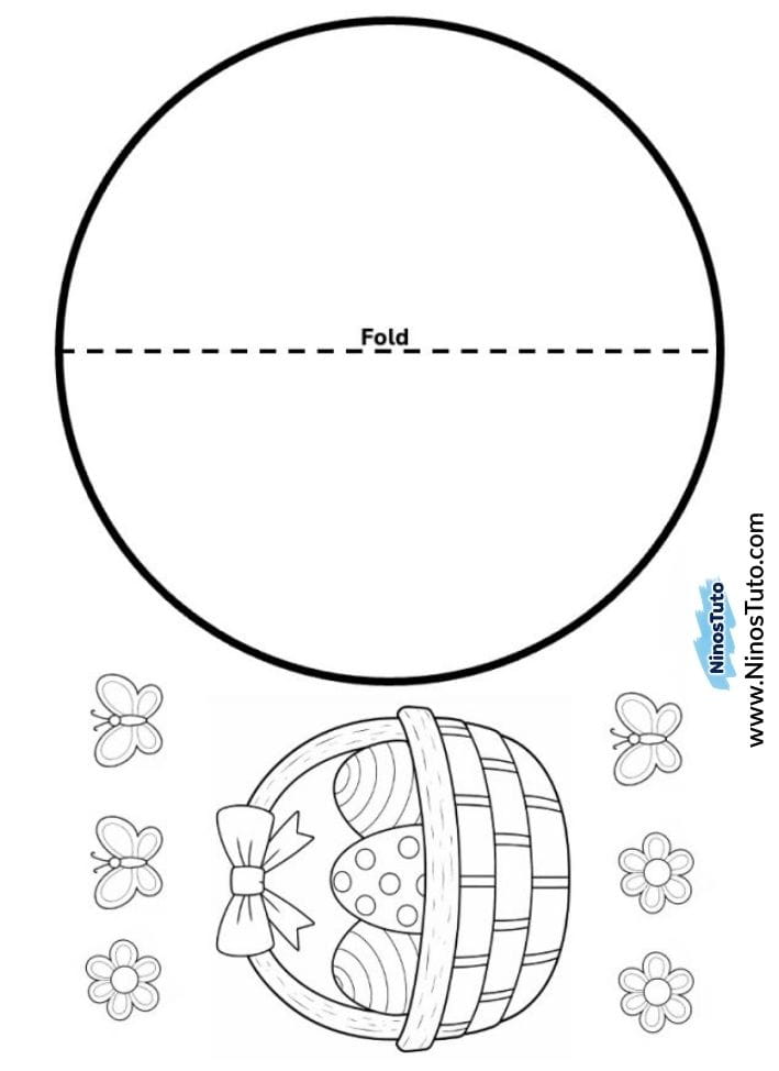 1. Imprime la plantilla dada en una hoja blanca. Puedes imprimir el círculo con la cesta de huevos de Pascua, flores y mariposas.