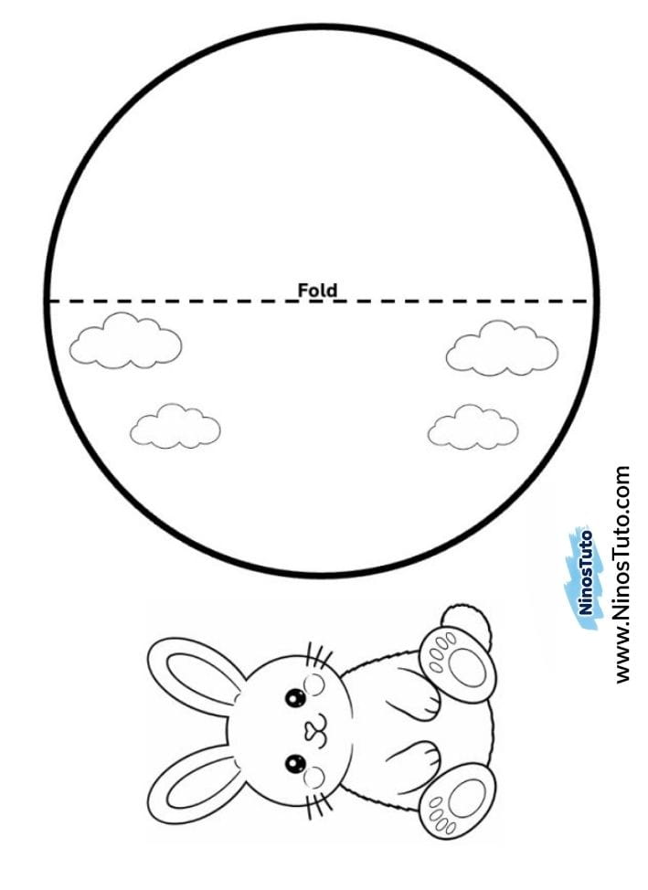 2. Colorea las nubes y la imagen del conejito dentro del círculo usando crayones, rotuladores o lápices de colores.