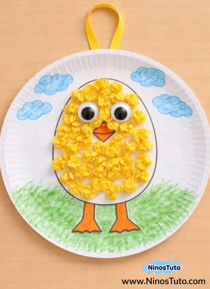 05. Manualidad de Pollito de Papel Tissue con Plato de Papel