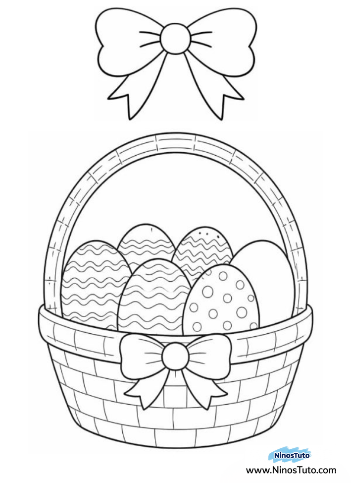 2. Imprime la canasta de Pascua, el moño, las flores, las estrellas y los puntos en una hoja blanca.