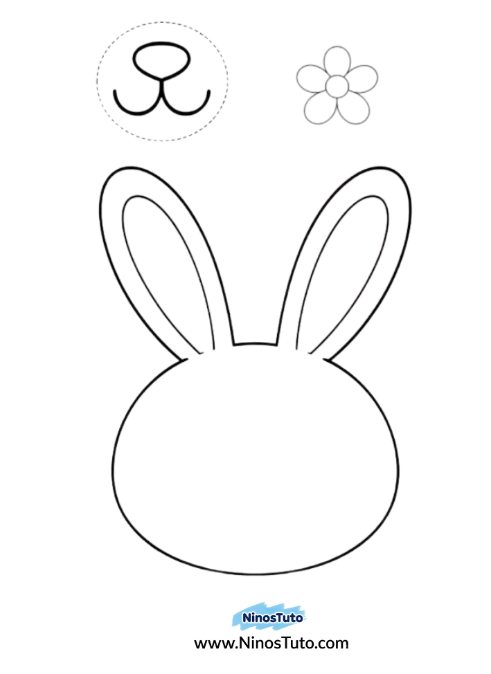 2. Imprime la cara del conejito, las flores y las partes de la nariz y la boca en una hoja blanca.